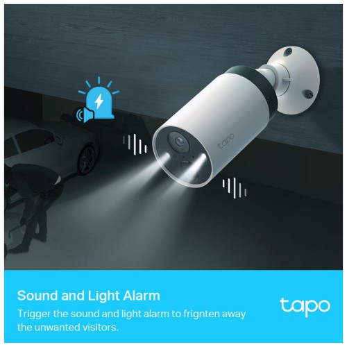 Розумна бездротова система відеоспостереження Tapo C420S2 з двома камерами забезпечує чітке зображення у 2K QHD, кольорове нічне бачення, двостороннє аудіо та штучний інтелект для розпізнавання людей, тварин і авто. Завдяки автономній роботі до 180 днів та ступеню захисту IP65, система підходить для зовнішнього використання.
