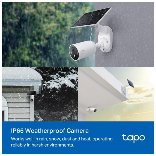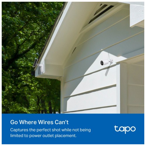 Комплект TP-LINK Tapo C425 KIT складається з бездротової камери відеоспостереження з роздільною здатністю 2K QHD та сонячної панелі для безперервного живлення. Камера підтримує кольорове нічне бачення, розумне AI-розпізнавання, двосторонній звук і має захист IP65, що гарантує стабільний нагляд без постійної підзарядки.