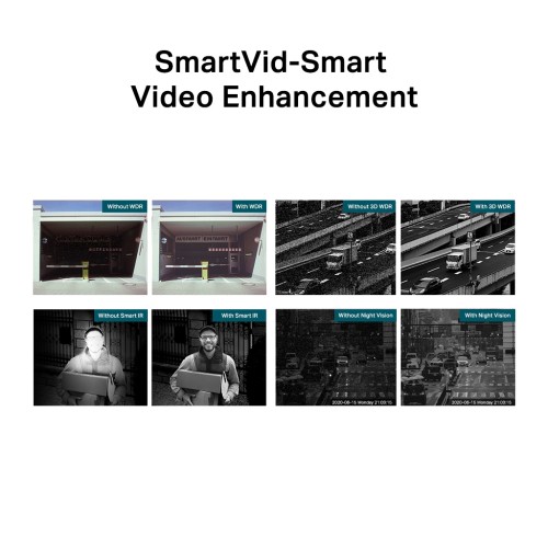 • Розумне покращення відео: професійні VIGI технології обробляють відео, щоб значно покращити їх якість, що є життєво важливим для вашого моніторингу, включаючи Smart IR, WDR, 3D DNR і Night Vision.