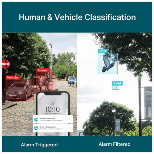 Додатково, камера обладнана вбудованим мікрофоном і динаміком для аудіомоніторингу, що дає змогу не тільки бачити події, але й чути їх. Завдяки розширеним функціям, як-от детекція людини, розпізнавання транспортного засобу, і виявлення руху, ви завжди будете в курсі подій на вашій території. Камера буде слати вам сповіщення при перетині визначених зон та контролювати входи та виходи в області.