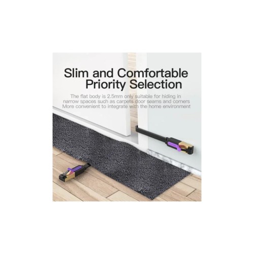 Плоский патч-корд Vention Cat.7 — це високопродуктивне мережеве рішення, розроблене для поєднання естетичної зручності та промислової швидкості. Створений для сучасного цифрового середовища, цей 3-метровий кабель підтримує швидкість передачі даних до 10 Гбіт/с і смугу пропускання 600 МГц, що робить його значно швидшим і функціональнішим за стандартні альтернативи категорій Cat 5 або Cat 6. Його елегантний чорний профіль ідеально підходить для любителів ігор, творчих професіоналів і всіх, хто потребує стабільного з’єднання без затримок для потокової передачі 4K-відео або передачі великих файлів. Окрім високої продуктивності, кабель вирізняється особливою плоскою геометрією, яка дозволяє легко організувати кабелі, прокладаючи їх під килимами, через вузькі щілини дверей або вздовж плінтусів без створення непривабливих випуклостей чи заплутувань.
