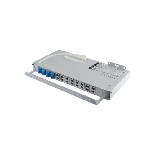 Панель складається з сталевого корпусу з кришкою і поворотною передньою панеллю. Поворотна панель відкривається зліва, забезпечуючи доступ до сплайс-касеті без демонтажу з стійки. На передній панелі є 24 посадочних місця для установки адаптерів типів SC.