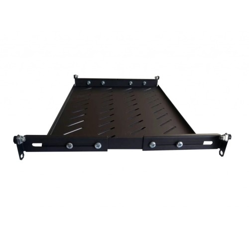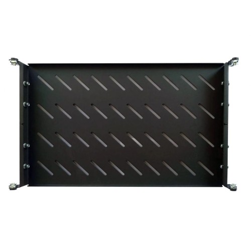 Стаціонарна полиця U-FS-45-BLACK 19" з кріпленням в 4 точках універсальна. Для забезпечення охолодження нагрітого всередині шафи повітря шляхом конвекції, в полицях передбачені вентиляційні отвори (перфорація). Комплектується регульованими по глибині установчими направляючими, завдяки яким полки можуть бути встановлені в шафах будь-яких виробників. Підходить для установки в 19 дюймові шафи глибиною 450 мм.