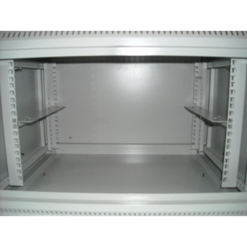 Шафа настінна 9U Hypernet (WMNC-9U-FLAT) поставляється в розібраному вигляді, в компактній упаковці. Особливості: знімні бічні стінки на замках; два кабельних вводи, закриті металевими заглушками на гвинтах, в даху і внизу шафи; посадочне місце під один вентилятор; передня і задня пари Реков; передні двері - метал з розжареного скла;  клеми заземлення; максимальне навантаження 60 кг.