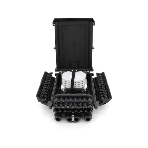 Муфта оптична Merlion ML-OP-F203 являє собою герметичну муфту з 4 введеннями, здатну вмістити до 4 касет і виконати до 96 зварювань у два шари. Виготовлена ​​із матеріалу ABS.