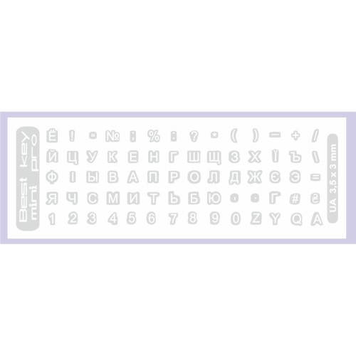 Наклейка на клавіатуру BestKey mini Pro 3,5х3мм, прозора основа, 70, білий (BKmPRO/WhiTr/050)