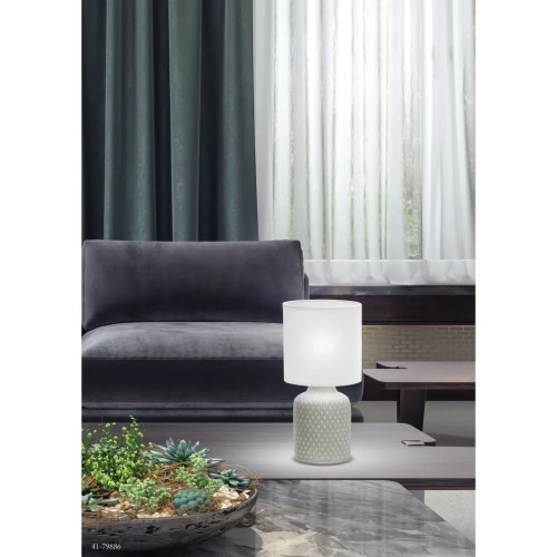 Виготовлена з високоякісної кераміки, основа лампи має витончений сірий колір, який ідеально доповнює білий абажур. Завдяки розмірам 15 см завширшки та 32 см заввишки ця настільна лампа є компактною, проте забезпечує достатнє освітлення для різних цілей.