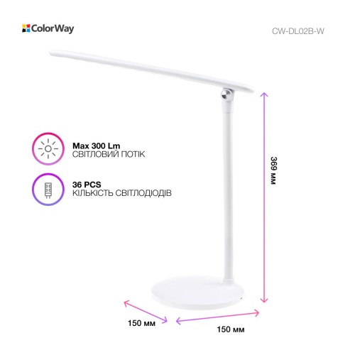 Настільна світлодіодна лампа ColorWay з вбудованим акумулятором. Стильний дизайн та функціональні можливості роблять лампу ColorWay не тільки елегантним елементом інтер'єру, але і незамінним аксесуаром, що допомагає підвищити продуктивність й ефективність роботи.