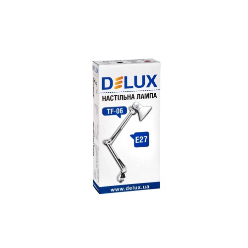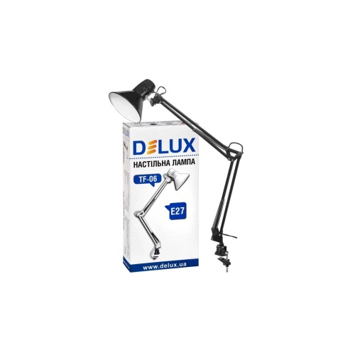 Настільна лампа Delux TF-06 забезпечує можливість вільного переміщення джерела світла над поверхнею столу, а також регулювання висоти лампи над столом, що дає оптимальний рівень освітленості для будь-яких видів робіт. Незамінний помічник на вашому робочому столі як вдома, так і в офісі. Ергономічний дизайн, сучасні матеріали та функціональність — все це об'єднано в настільних лампах Delux.
