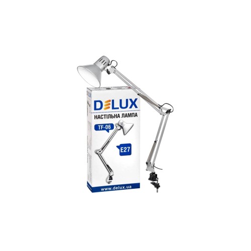 Настільна лампа Delux TF-06 забезпечує можливість вільного переміщення джерела світла над поверхнею столу, а також регулювання висоти лампи над столом, що дає оптимальний рівень освітленості для будь-яких видів робіт. Незамінний помічник на вашому робочому столі як вдома, так і в офісі. Ергономічний дизайн, сучасні матеріали та функціональність — все це об'єднано в настільних лампах Delux.
