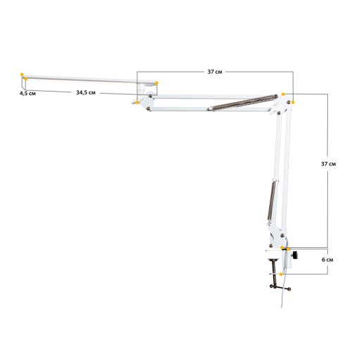 Світлодіодна лампа Mealux DL-700 тримається на стільниці товщиною до 45 мм і фіксується завдяки струбцині.