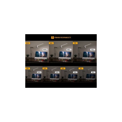 Правильно налаштований режим допоможе зберегти зір від втоми. Лампа має 7 рівнів яскравості, що покроково змінюються. Завдяки налаштуванню мінімальної яскравості її можна використовувати в якості нічника. Максимальна яскравість підходить для виконання точної, делікатної роботи.