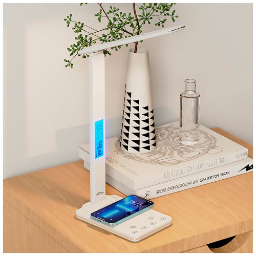 Ця настільна лампа - справжній центр інтелекту. Вона оснащена РК-годинником з підсвічуванням, який не тільки інформує вас про поточний час, а й може слугувати будильником.