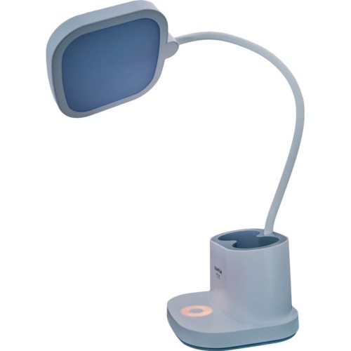 Лампа обладнана світлодіодним підсвічуванням із можливістю регулювання яскравості та колірної температури, що робить її ідеальним вибором для роботи чи відпочинку. Вона також слугує Power Bank, дозволяючи заряджати мобільні пристрої через USB. Компактний дизайн і додаткові можливості, як-от заміна акумуляторів, роблять цю лампу практичним та довговічним аксесуаром.