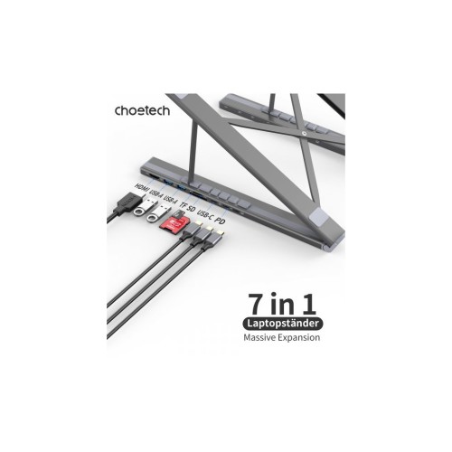Порт-реплікатор Choetech USB-C 7-in-1 (HDMI/PD/картридер/USB-A/USB-C) Docking Station (HUB-M48-GY)
