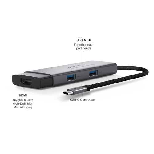 Розширте можливості свого ноутбука або планшета за допомогою багатофункціонального USB-C хаба TP-LINK UH5020C. Цей компактний концентратор перетворює один порт USB Type-C на п’ять корисних інтерфейсів, забезпечуючи все необхідне для роботи, навчання чи розваг.