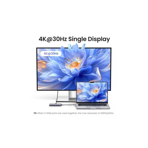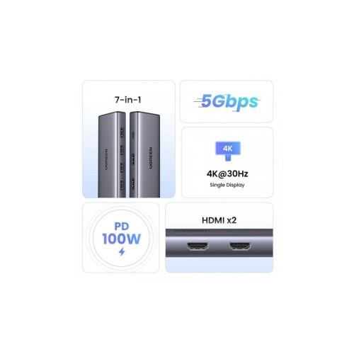 Порт-реплікатор Ugreen Dock CM498 USB 3.0 Type-C -> 1хUSB-A 3.0/3хUSB-A 2.0/2xHDMI 4K 30Гц PD (35897)