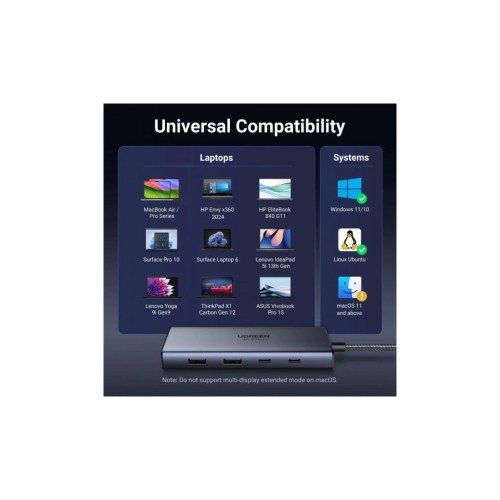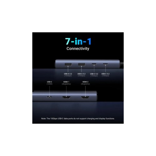 Порт-реплікатор Ugreen Dock CM498 USB3.2 Type-C ->2xUSB-A 3.2/2xUSB-C 3.2 10Гбіт/с/ 2xHDMI 4K60Гц/PD 100W (45379)