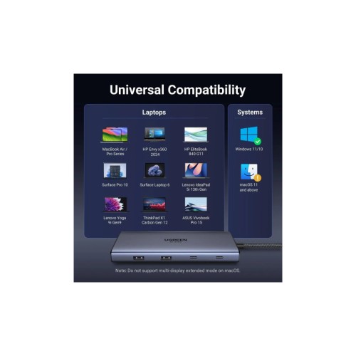 Порт-реплікатор Ugreen Dock CM639 USB3.2 Type-C --> HDMIx2, 60Hz/2xUSB-A/2xUSB-C 3.2/ RJ45/SD/TF/PD 100W (45380)