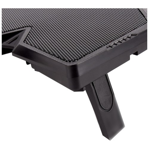Сітчаста металева поверхня сприяє оптимальній циркуляції повітря та не перешкоджає вільному проходженню потоків. Ергономічний дизайн дозволяє комфортно розташувати ноутбук та працювати або грати протягом довгого часу без дискомфорту. Регульований кут нахилу допомагає налаштувати зручне положення відповідно до індивідуальних потреб.