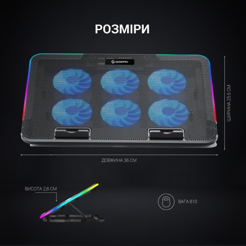 GamePro CP670 неймовірний аксесуар оснащений шістьма вентиляторами розміром 60х60х15 мм, які працюють на вражаючій швидкості 2600 обертів у хвилину. Це означає, що вони здатні забезпечити ефективне охолодження вашого ноутбука, уникаючи перегріву та зберігаючи його продуктивність на високому рівні.