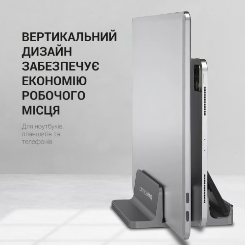 Підставка має подвійний слот, що дозволяє зберігати два ноутбуки одночасно. Це робить її ідеальним інструментом для організації вашого робочого столу, забезпечуючи оптимальний порядок та легкість в роботі.