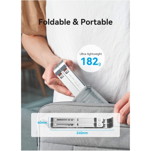 Конструкція, яка складається, та мала вага — лише 183 грами — роблять підставку зручною для зберігання та транспортування.