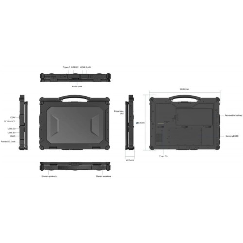 Ноутбук оснащений трьома портами USB-A, два з яких підтримують швидкість обміну даними до 5 Гбіт/с, портом USB-C, роз’ємами HDMI та RS232 – підключайте до нього усі необхідні периферійні пристрої, монітори, проєктори тощо.