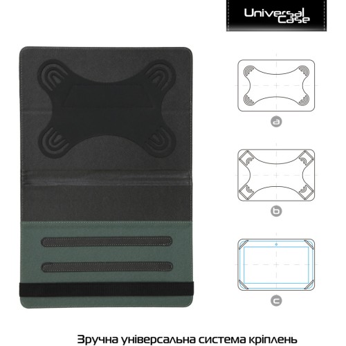Додатково чохол має функцію зручної підставки для комфортнішого повсякденного використання планшета. Чохол щільно та надійно закріплює пристрій за допомогою силіконового кріплення, яке передбачено під кілька розмірів планшета. Кріплення вироблене з високоякісних матеріалів.