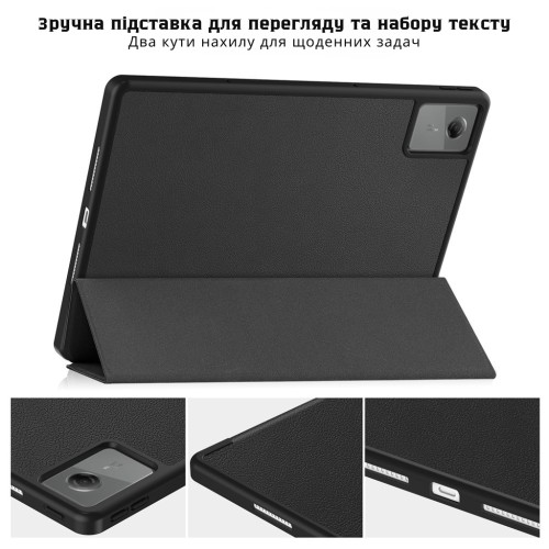 Чохол легко трансформується у зручну підставку з кількома кутами нахилу, що дозволяє комфортно переглядати відео, працювати з текстами, спілкуватися у відеодзвінках або використовувати планшет для навчання.