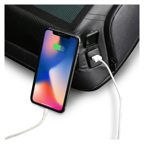 Завдяки запатентованій USB-технології передачі енергії можна заряджати пристрої, не відкриваючи рюкзак — просто під’єднай кабель до зовнішнього порту.