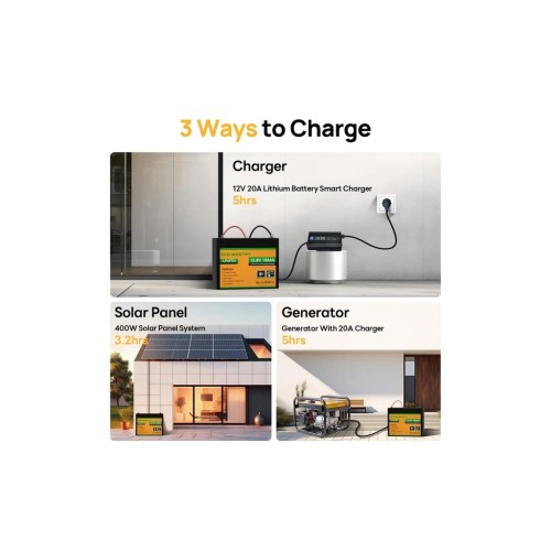 Моніторинг через Bluetooth. Нова батарея ECO-WORTHY 12V 100Ah LiFePO4 з Bluetooth 5.0 дозволяє стежити за напругою, струмом та ємністю прямо з телефону. Також ви зможете контролювати термін служби батареї, що залишився. Батарея оснащена функцією вимкнення зарядки при температурі нижче -7℃ (19.4℉), запобігаючи пошкодженню осередків. Ідеальна для зимового використання в автобудинках, на човнах та автономних системах. ECO-WORTHY 12V 100Ah відповідає стандарту BCI Group 24, важить 9.6 кг та легко замінює свинцево-кислотні батареї без необхідності змінювати проводку. Літій-залізо-фосфатні осередки забезпечують високу енергоємність, стабільність та безпеку, підтверджену сертифікатами UL, IEC, CE та RoHS. Вбудована BMS захищає від перезаряду, перегріву та короткого замикання. Підтримує конфігурацію 4S4P з можливістю нарощування ємності до 20.48 кВтг.