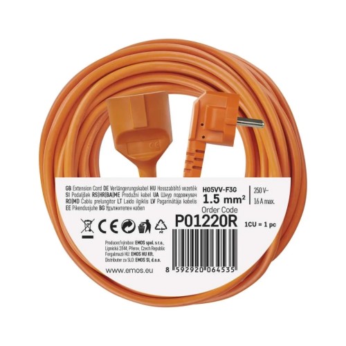 Подовжувач P01220R від чеського виробника Emos. Ізоляція виготовлена з негорючого ПВХ. Відмінне рішення для саду та городу. Має помаранчеве забарвлення для легкого виявлення дроту на землі.