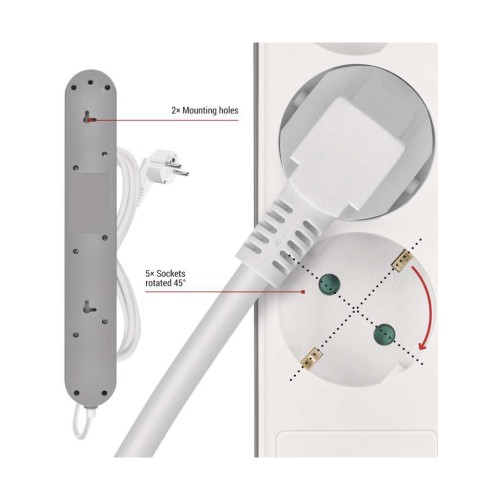 • Можливість під'єднати до 5 електроприладів одночасно та додатково зарядити смартфон чи планшет через USB-A або USB-C.