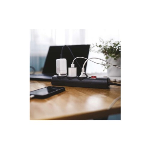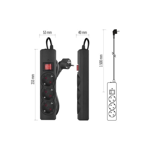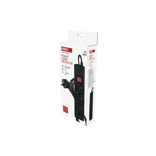 Компактний мережевий фільтр EMOS P54214 із трьома розетками забезпечує надійний захист підключених приладів від стрибків напруги. Завдяки вбудованому варистору з енерговбирною здатністю 380 Дж він ефективно оберігає побутову техніку, комп'ютери, телевізори та іншу електроніку від імпульсних перенапруг у мережі.