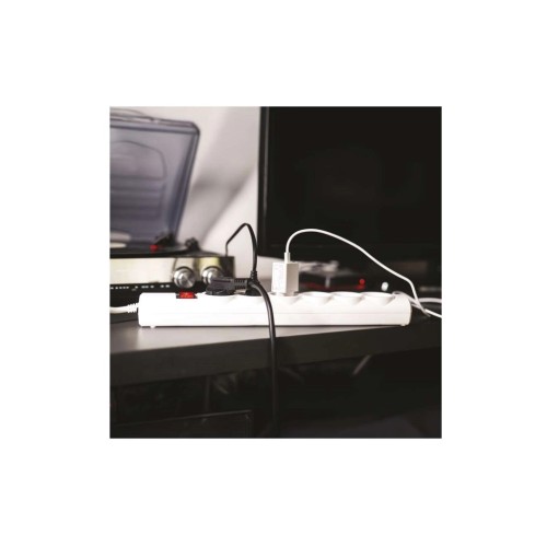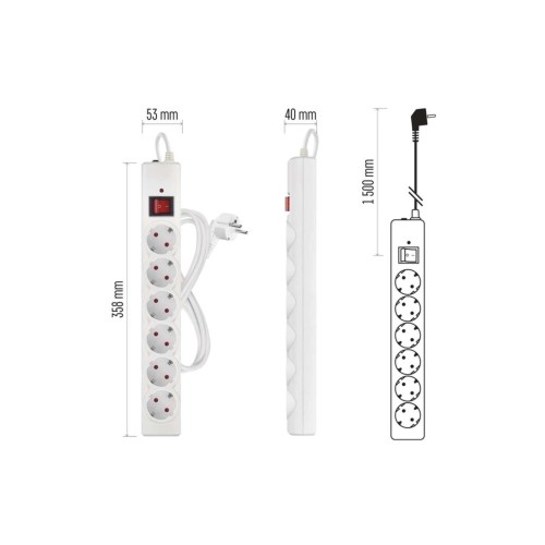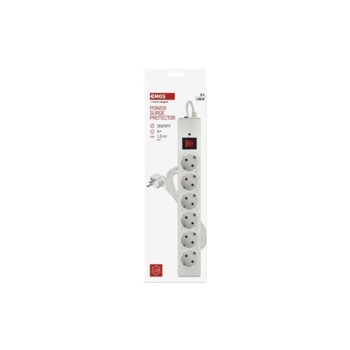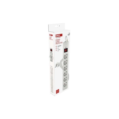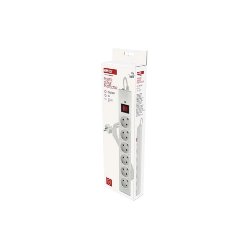 Компактний мережевий фільтр EMOS P54215 на 6 розеток забезпечує надійний захист підключених приладів від стрибків напруги. Завдяки вбудованому варистору з енерговбирною здатністю 380 Дж він ефективно оберігає побутову техніку, комп'ютери, телевізори та іншу електроніку від імпульсних перенапруг у мережі.