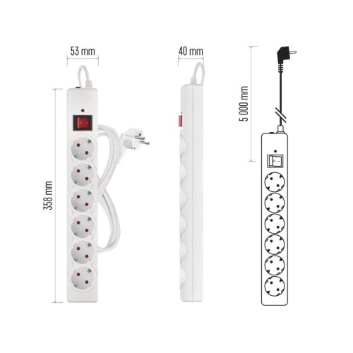 • Кількість розеток: 6 × 2P + PE (із заземленням)