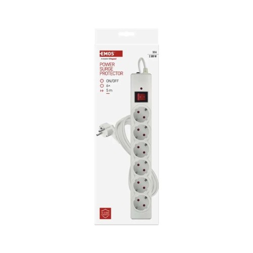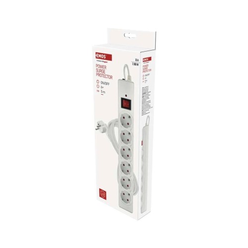 Мережевий фільтр EMOS P54217 — надійне та функціональне рішення для підключення декількох електроприладів, оснащене шістьма європейськими розетками із заземленням і довгим кабелем. Він забезпечує комплексний захист вашої техніки від короткочасних імпульсних перенапруг та перевантаження мережі.