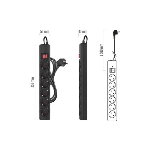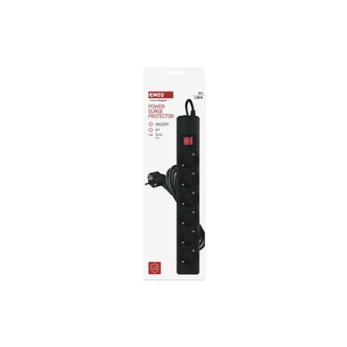 Мережевий фільтр EMOS P54219 із захистом від перенапруги має 6 розеток і кабель довжиною 3 м. Це надійне рішення для одночасного підключення кількох електроприладів удома чи в офісі.