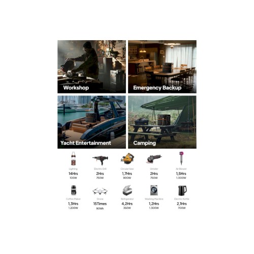 Приготуйтеся до того, що AC240P вразить вас своєю винятковою вихідною потужністю. Він без зусиль впорається з 99% електроприладів завдяки потужній номінальній потужності 2.400 Вт. Але почекайте, це ще не все! Активуйте підйомну потужність до 3.600 Вт, і тоді запуск енергоємних пристроїв стане простою справою! Час відмовитися від бензинового генератора, адже AC240P завжди напоготові для будь-яких сценаріїв.