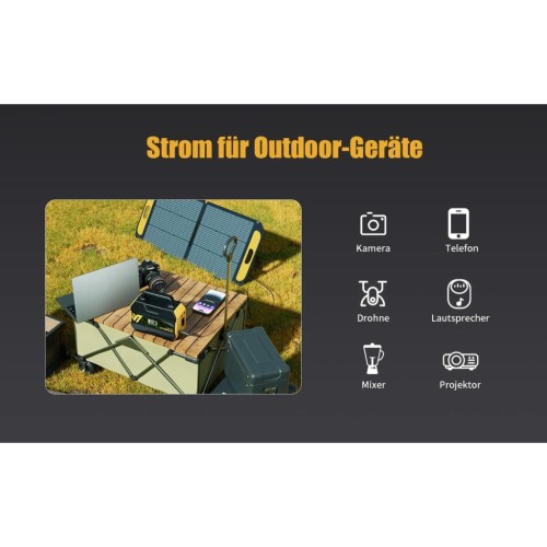 • Швидка зарядка: Завдяки мережевому адаптеру потужністю до 90 Вт повна зарядка станції займає всього 2,5 години. Ви також можете зарядити її трьома іншими способами: від автомобільного зарядного пристрою / сонячної панелі (продаються окремо) / через порт USB-C (100 Вт PD).