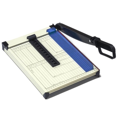 Різак шабельного типу для підрізування паперу. Призначений для офісної та домашньої поліграфії. Довжина різу - 297 мм. Товщина стопи - 1,2 мм. На столі нанесена розмітка стандартних форматів. Лінійка-позиционер для більш точного і зручного виставлення лінії різу. Ручка ножа знімна. Металева основа різака, не деформується з часом, завжди тримає прямий і рівний різ.