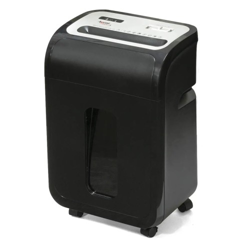 Знищувач документів офісної серії. Перехресна різка, 5-й рівень секретності, розмір фрагментів 3х9 мм. Знищує одночасно до 10 аркушів паперу. Приймає документи, скріплені скобами або скріпками. Можливість знищення пластикових карток. Автоматичний старт і стоп, реверс. Об'єм кошика для відходів 23 л. На панелі відображаються індикатори роботи шредера: -живлення, -відкриті дверцята, -перегрів двигуна. Вбудований індикатор синього кольору, що підсвічує оглядове вікно. Термозахист двигуна від перегріву. Для зручності переміщення оснащений колесами. ТМ Agent - оптимальне поєднання ціни, якості та набору необхідних функцій для роботи в офісі.