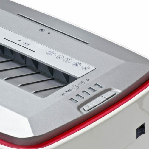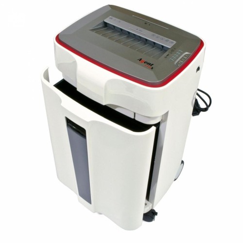 Автоматичний старт і стоп, автоматичний реверс. Обсяг кошика для відходів 38 л. На панелі відображаються індикатори роботи шредера: застрягання паперу, повна кошик, кошик не закрита, перегрів двигуна. Термозахист двигуна від перегріву. Оглядове вікно для контролю рівня заповнення кошика. Для зручності переміщення оснащений коліщатками зі стопорами.
