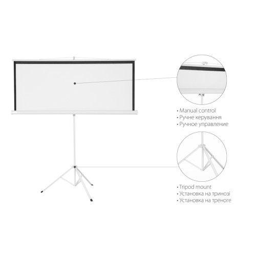 Проекційний екран 2E на тринозі для проектора з пружинним механізмом згортання. Виріб призначений для використання з побутовими проекторами довільної роздільної здатності. Виробник гарантує високу якість картинки, мінімальне спотворення кольору, а також високу контрастність.