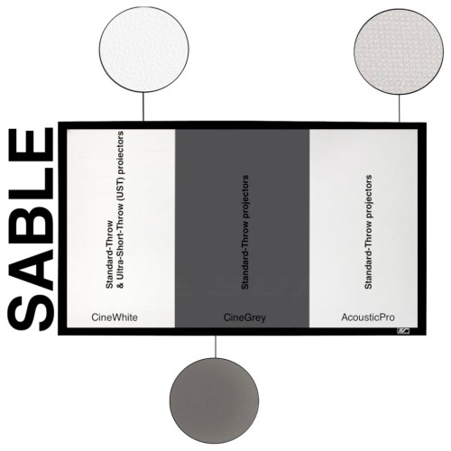 Серія Sable Frame — це відмінне рішення для тих, хто хоче отримати кінематографічну якість зображення у себе вдома. Міцна алюмінієва рама з покриттям із чорного оксамиту не лише додає елегантності, а й поглинає надлишкове світло по краях, усуваючи небажані тіні.