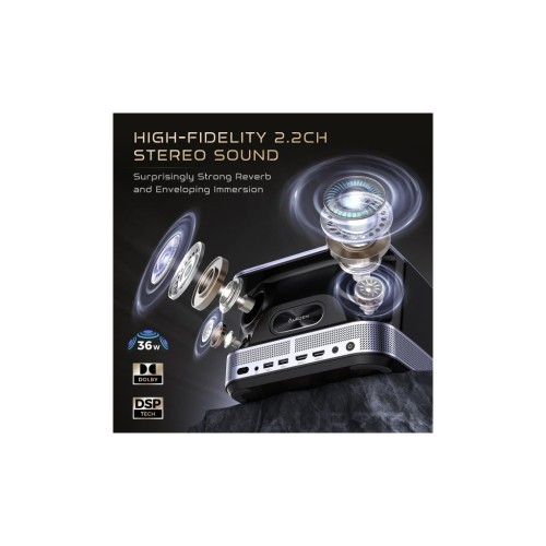 Вбудована аудіосистема потужністю 36 Вт з підтримкою технології 3D Dolby Audio перетворює проєктор на потужну автономну Bluetooth-колонку. Вона відтворює захоплюючий об’ємний 2.2-канальний звук без потреби підключення зовнішніх динаміків. Налаштовуйте режим прослуховування в залежності від вмісту – обирайте режим спорту, музики, кіно чи новин та поринайте у перегляд.