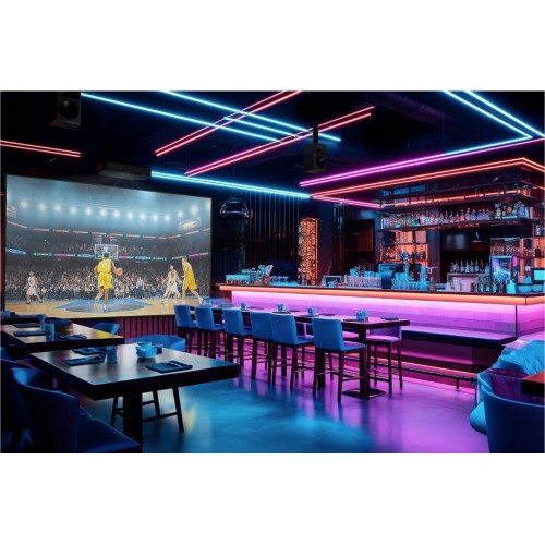 З яскравістю 4500 люмен та динамічним контрастним співвідношенням 5000000:1 EH-QS100B ідеально підходить як для яскравих, так і для темних приміщень, що робить його придатним для використання вдень та вночі. Незалежно від того, чи ви дивитеся фільм у слабко освітленій кімнаті або насолоджуєтеся спортивною подією в денний час, висока яскравість проектора забезпечує чітке та яскраве зображення, яке не блисне в умовах гарного освітлення. Універсальний та простий у використанні, він ідеально підходить для домашніх розваг у будь-якій обстановці.