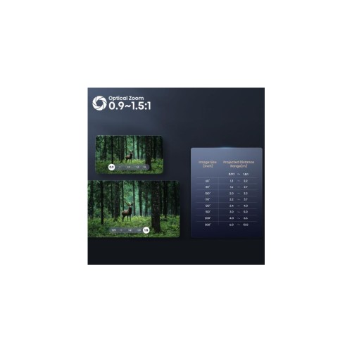 Функція надзвичайного оптичного збільшення підвищує продуктивність, як ніколи раніше. Точне зміщення фокусу з 1,67-кратним гнучким оптичним збільшенням і надшироким діагональним співвідношенням (0,9~1,5:1) забезпечує більший екран із меншої відстані. Кожен кадр зберігає яскравість і чіткість. Формат 4K без втрат якості та спотворень.