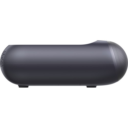 Проєктор виконаний у мінімалістичному дизайні білого кольору з сірою текстильною передньою панеллю, що дозволяє йому гармонійно вписатися в будь-який інтер'єр. Для безпеки, особливо в сім'ях з дітьми, передбачені вбудовані датчики захисту очей, які автоматично зменшують яскравість лазера, якщо хтось наближається до об'єктива. В коробці: